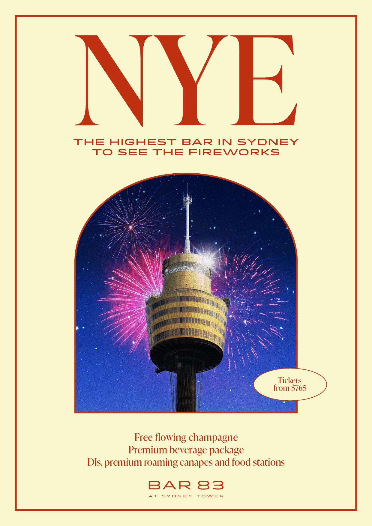 Promotional rollout for Sydney Tower’s 2024/25 NYE celebrations, including in-venue posters, EDMs, and social media animations for three distinct brands. The event sold out in record time.
